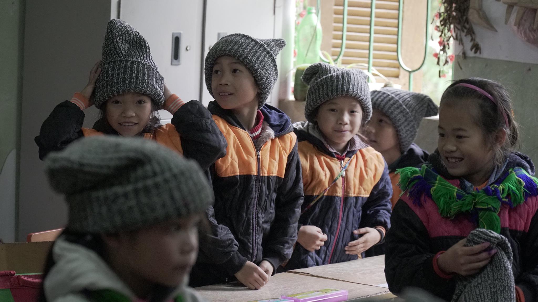 5. Tặng quà, sách truyện mới, 500 mũ len ấm (Nhà tài trợ: Chú Nguyễn Quí Bính) cho 500 em học sinh và thầy cô trường mầm non Bản Nhùng.