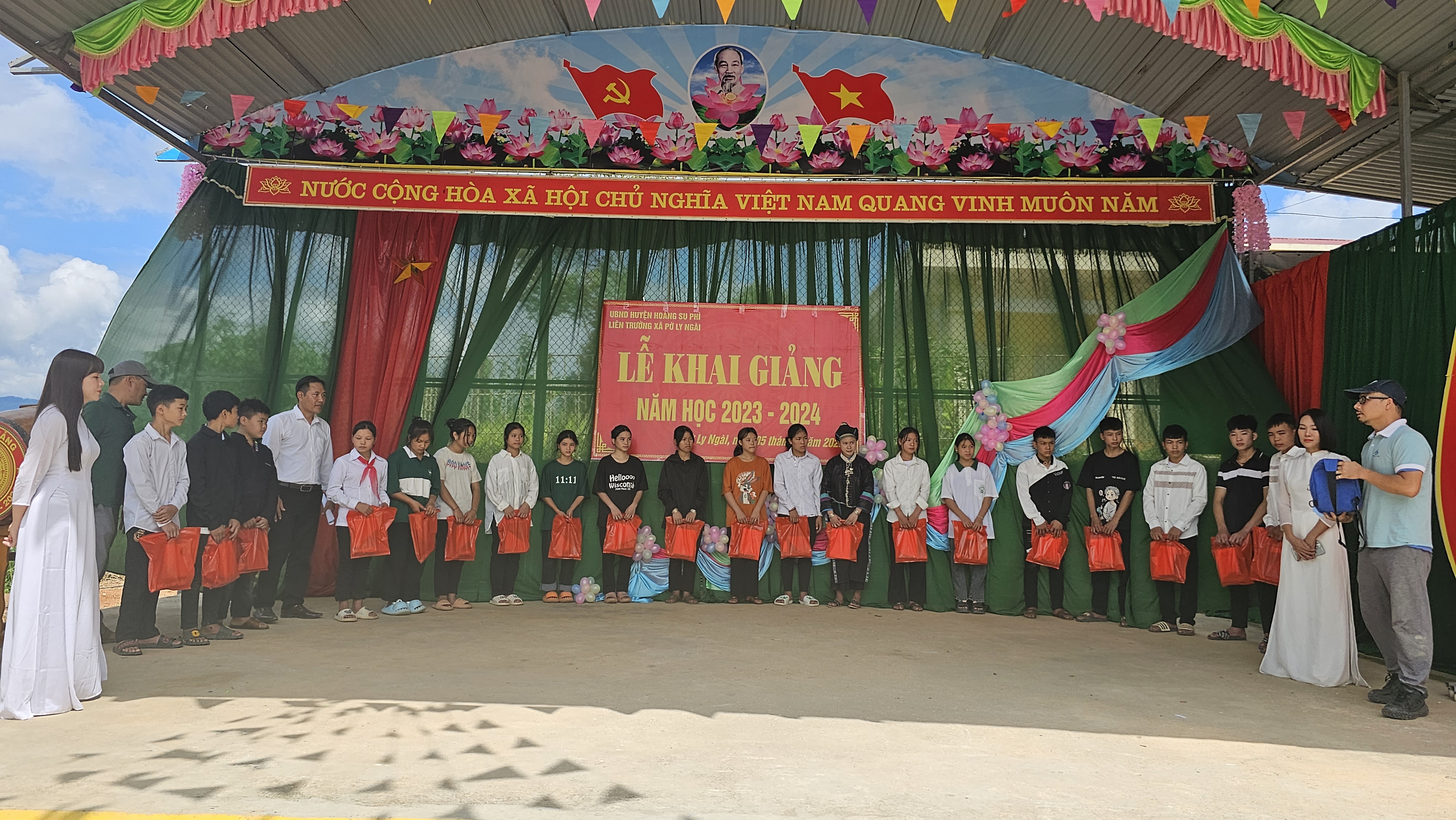 Ngày 5/9, đoàn tới tham dự lễ khai giảng cùng các em học sinh tại trường TH&THCS Dân tộc bán trú Pờ Ly Ngài, Hoàng Su Phì và trao tặng quà cho 350 cháu và 10 suất học bổng (500.000vnđ/suất) khuyến học cho cho các em học sinh học nỗ lực học tập tốt và có hoàn cảnh đặc biệt khó khăn. Đồng thời, đoàn cũng có dịp ghép thăm qua khu WC của trường đang trong quá trình hoàn thiện sửa chữa toàn bộ nhờ vào sự đóng góp của các nhà hảo tâm tham gia UAVF Community Projects.
