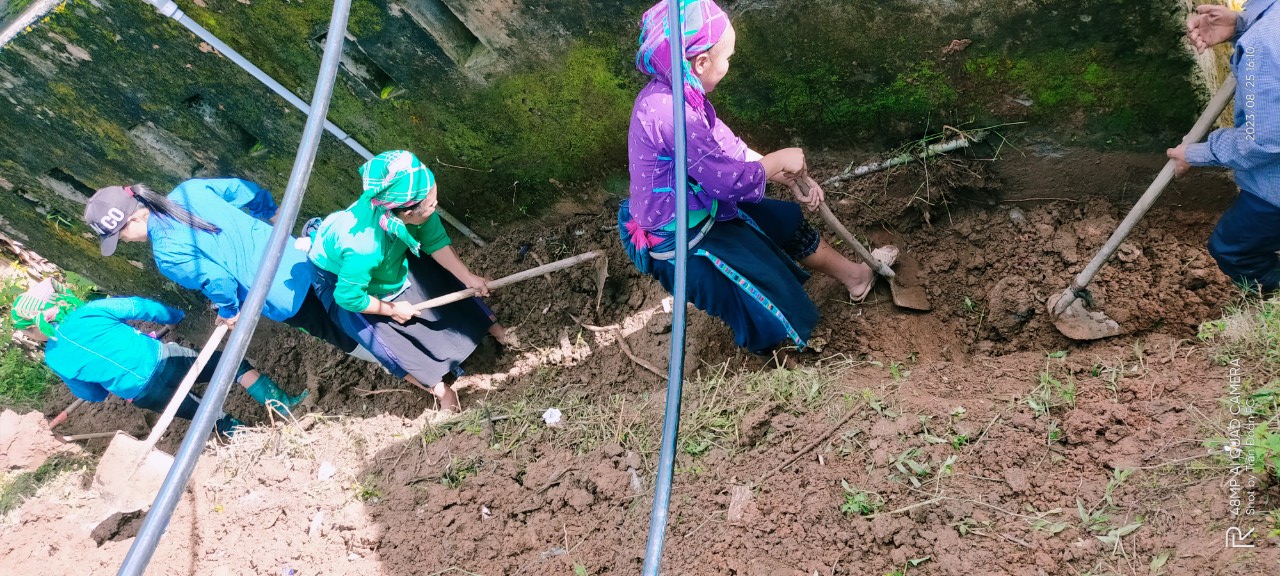 Với sự tài trợ kinh phí và cách thức triển khai của UAVF, người dân chung sức bắt tay vào sửa chữa công trình khu nhà vệ sinh PLN