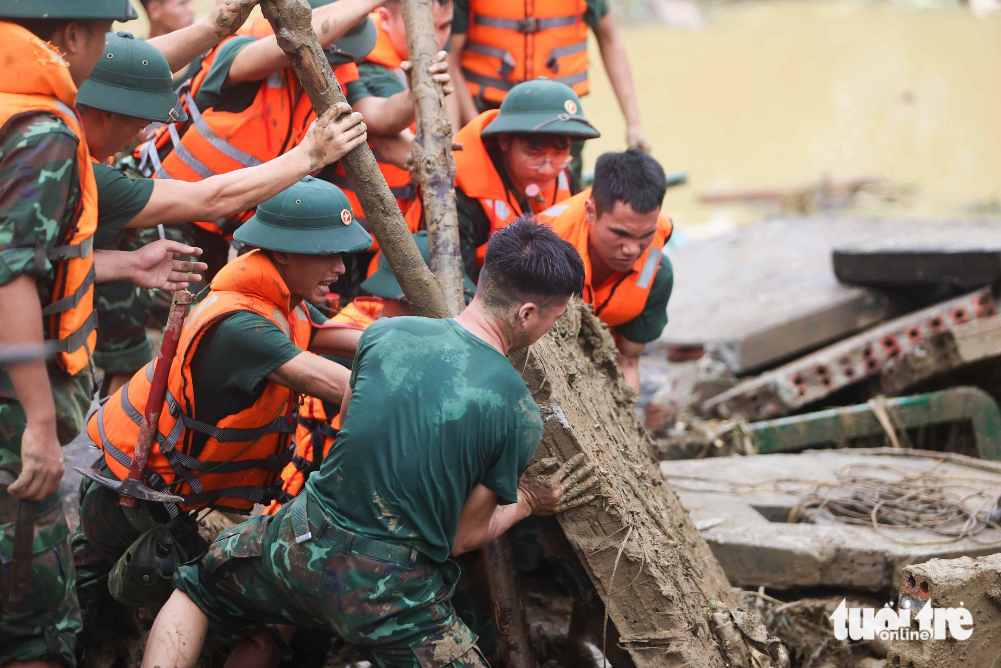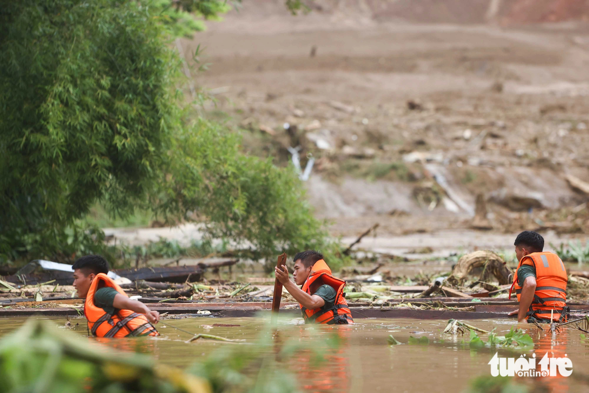 Mưa lũ tràn xuống xé toạc một thửa ruộng bậc thang của người dân địa phương. Hôm nay 12-9, công tác cứu hộ sẽ tiếp tục được tiến hành với sự tham gia của hơn 500 người, chó nghiệp vụ sẽ được triển khai để đẩy nhanh việc tìm kiếm nạn nhân – Ảnh: NGUYỄN KHÁNHHiện trường vụ lũ quét xóa sổ gần hết thôn Làng Nủ. Con suối Vằng Cuồng vốn thanh bình, nay lũ quét tràn xuống nhấn chìm 37 hộ dân nằm dọc quanh suối – Ảnh: NGUYỄN KHÁNHNgười dân làng Nủ chủ yếu là dân tộc Tày. Diện tích tự nhiên của huyện Bảo Yên khá rộng, song chủ yếu là rừng và đất rừng chiếm hơn 70% diện tích tự nhiên của huyện, với diện tích che phủ hiện nay là 51% (năm 2009). Rừng nguyên sinh tập trung tại đầu nguồn và trên vành cao dãy núi Con Voi, có nhiều lâm sản quý hiếm – Ảnh: NGUYỄN KHÁNHThôn Làng Nủ nằm tại huyện Bảo Yên, huyện Bảo Yên, ở phía đông nam của tỉnh Lào Cai, nằm cách thành phố Lào Cai khoảng 75km về phía đông nam, cách trung tâm thủ đô Hà Nội khoảng 263km, phía đông giáp huyện Xín Mần và huyện Quang Bình, tỉnh Hà Giang và huyện Lục Yên, tỉnh Yên Bái – Ảnh: NGUYỄN KHÁNHLực lượng quân đội tìm kiếm các nạn nhân dưới nước lũ – Ảnh: NGUYỄN KHÁNH200 cán bộ, chiến sĩ thuộc Sư đoàn 316 của Quân khu 2; 80 cán bộ, chiến sĩ thuộc Tiểu đoàn Cảnh sát cơ động số 4, Trung đoàn Cảnh sát cơ động Tây Bắc, Bộ tư lệnh Cảnh sát cơ động cùng hơn 100 cán bộ, chiến sĩ Công an tỉnh Lào Cai, Công an huyện Bảo Yên tiếp tục công tác tìm kiếm cứu nạn – Ảnh: NGUYỄN KHÁNH