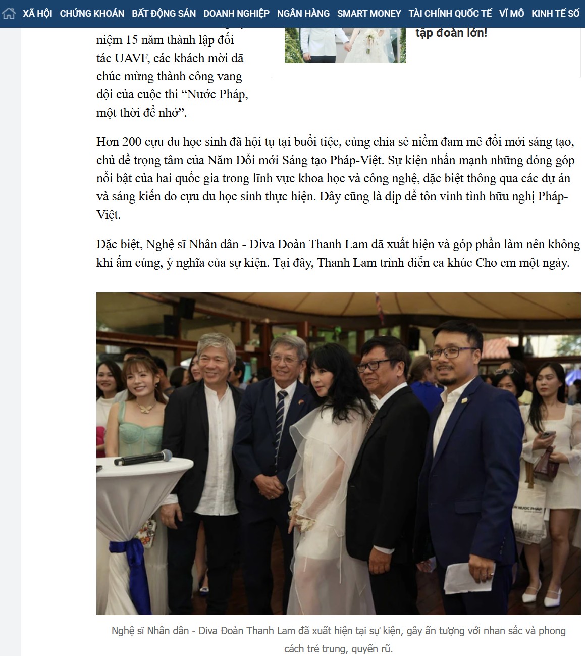 Mừng 15 năm UAVF “La Flamme des Alumni 2025” Posted byUAVFJune 12, 2025November 12, 2025Posted inCỰU PHÁP TẠI VIETNAM, DÒNG SỰ KIỆN, UAVF NETWORKINGTags:2025, FRENCH ALUMNI VIETNAM, HỘI CỰU DU HỌC SINH VIỆT NAM TẠI PHÁP, UAVF leurs parcours d’excellence. Nous remercions sincèrement Mme LE Thi Thu Hang – Vice-ministre des Affaires étrangères et nos Share this: Click to share on X (Opens in new window) X Click to share on Facebook (Opens in new window) Facebook Like Loading... Related