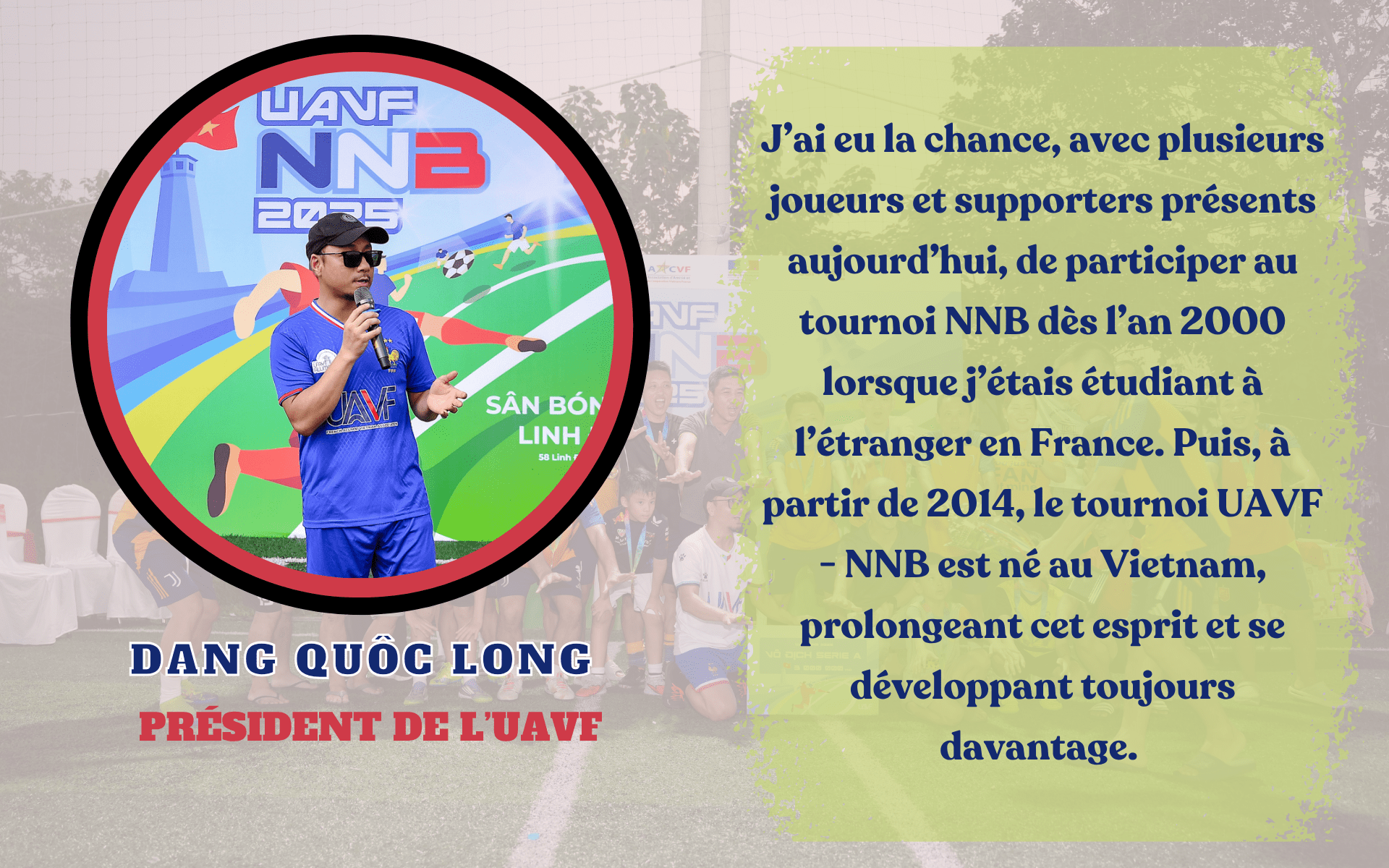 Bên cạnh việc tham gia đều đặn các giải bóng đá giàu truyền thống của cộng đồng Pháp ngữ tại Việt Nam từ hơn chục năm qua, UAVF LFAY ALUMNI FC tự hào là đồng sáng lập EU ALUMNI CUP ngay từ mùa đầu tiên – đóng góp vào sự kết nối và phát triển của cộng đồng châu Âu tại Việt Nam. Đích đến luôn là chiếc cúp vô địch, nhưng quan trọng hơn là hành trình chơi bóng vui, gắn kết anh em và mở rộng hợp tác nghề nghiệp sau mỗi trận đấu.