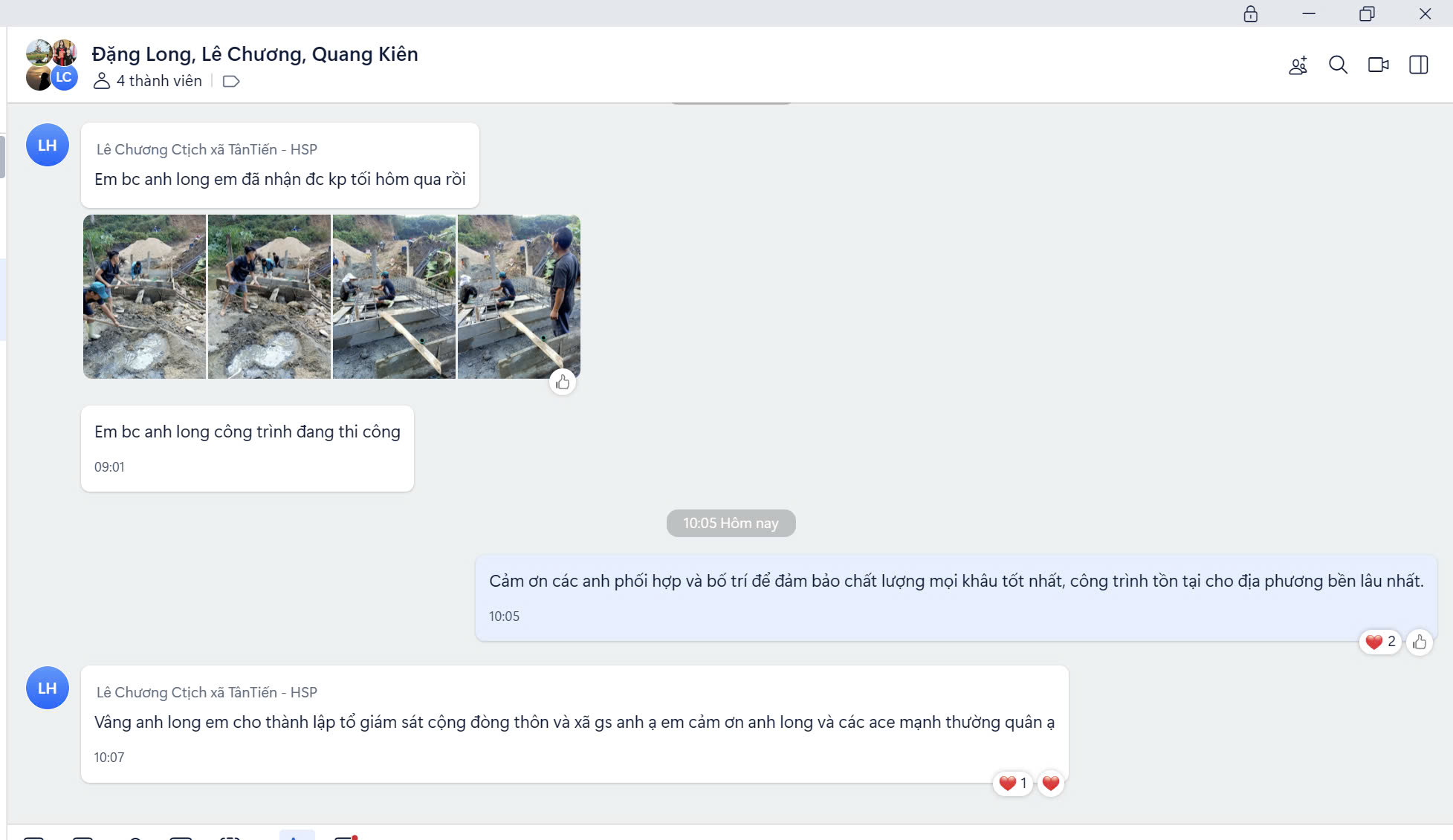 4 con đường + 2 cây cầu + 1 hệ thống đường ống nước 1.2km + 1 Công trình nhà vệ sinh