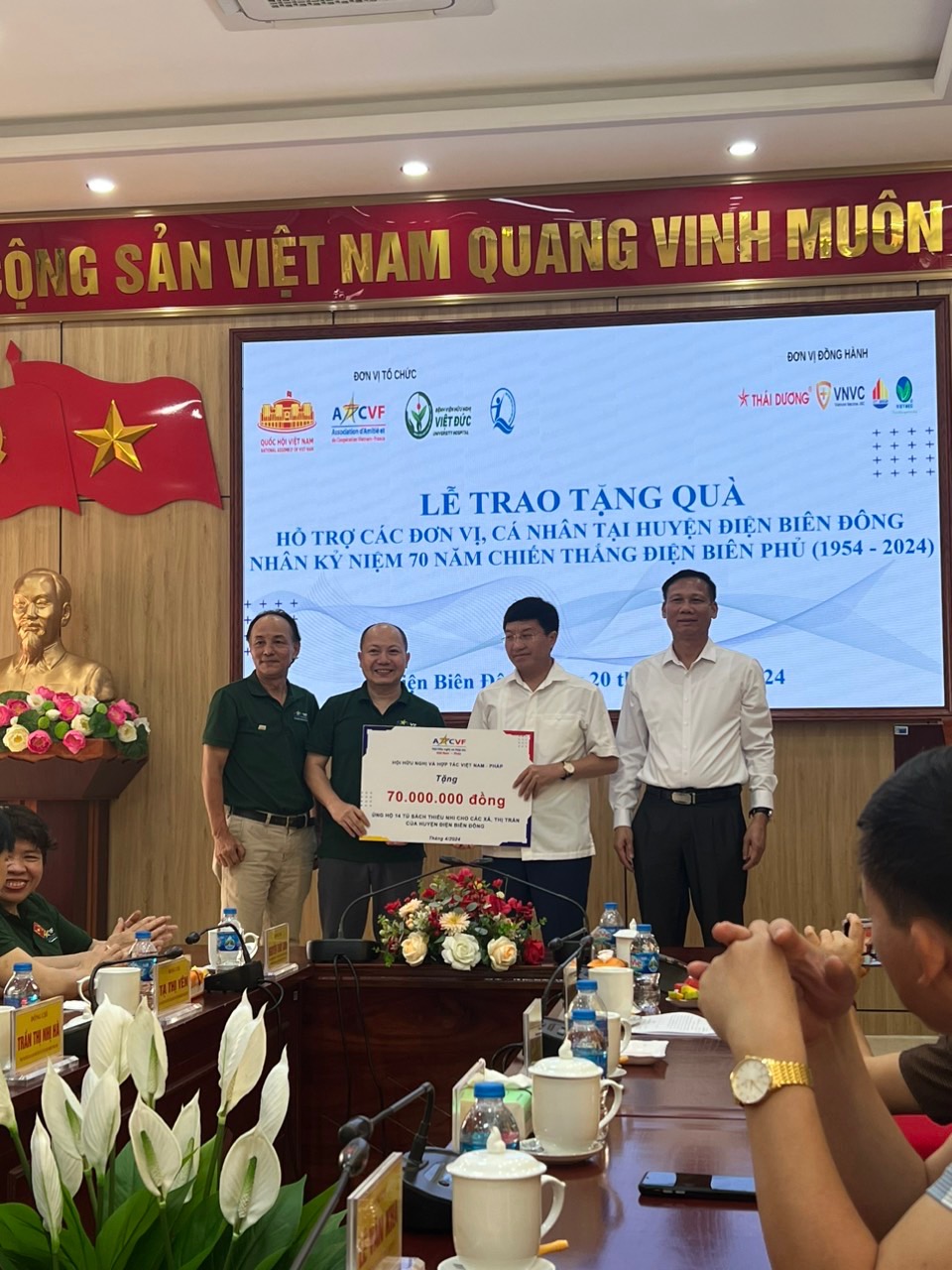 | 19-20/4/2023 | Đóng góp cho đoàn công tác Hội hữu nghị và hợp tác Việt Nam – Pháp đi Điện Biên tặng quà | 10,000,000 |